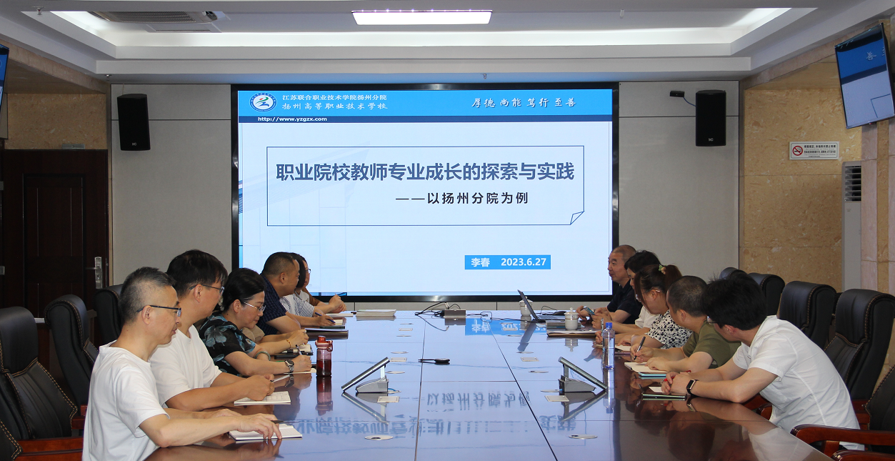 为强化江苏联合职业技术学院“联合共享、协同创新”机制, 6月27日上午,江苏江苏联合职业技术学院扬州分院副校长强玉龙一行来我校开展结对帮扶工作交流。我校校长何晨阳、副校长苏辉及相关部门负责人参加交流会。