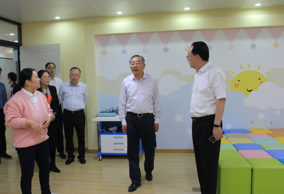 在何晨阳校长的带领下,万永良局长一行人视察了我校“阳光苑”学生成长发展中心,并详细了解我校学生心理健康教育工作内容。