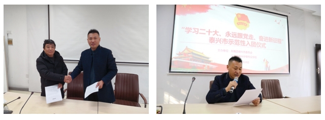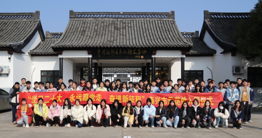 为大力弘扬革命精神、赓续红色血脉,深入学习、贯彻落实好党的二十大精神,以务实、严谨的工作作风和时不待我、只争朝夕的实干精神诠释好新时代好青年的标准,11月28日上午,由共青团泰兴市委员会主办、我校团委承办的“学习二十大、永远跟党走、奋进新征程”泰兴市示范性入团仪式在中共江浙区泰兴独立支部纪念馆成功举办。学校副校长苏辉出席活动并讲话。