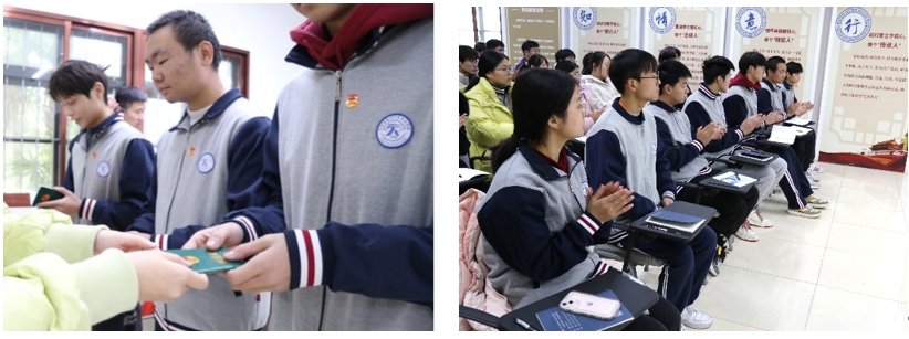 入团仪式在嘹亮的国歌中开始,学校团委书记杨巧珍宣读了新团员名单。学校各系部团总支书记为团员们颁发团员证、佩戴团徽。所有团员郑重宣誓,标志着他们正式成为光荣的共青团员。新团员代表陈漫发言,号召全体团员学习革命先烈的英雄事迹,弘扬团的优良传统,以团的信仰为信仰,以团的使命为使命,以团的未来为目标,不断前行。