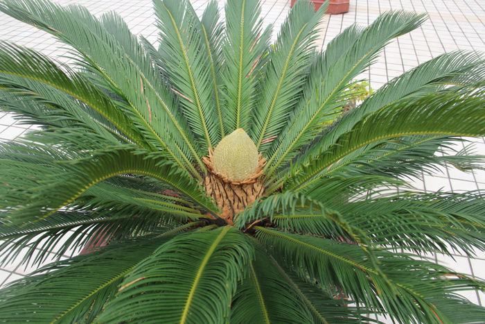 近日,我校中心广场两侧的铁树中有六棵铁树开出了形似寿桃状的黄色花朵,为学校增添了一道奇丽的风景。