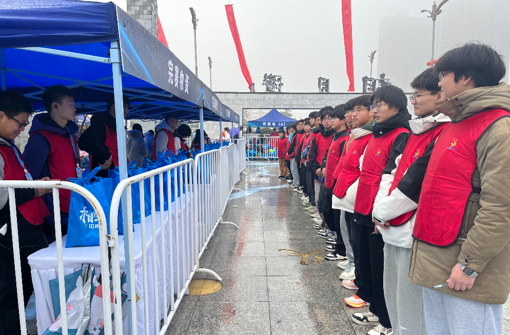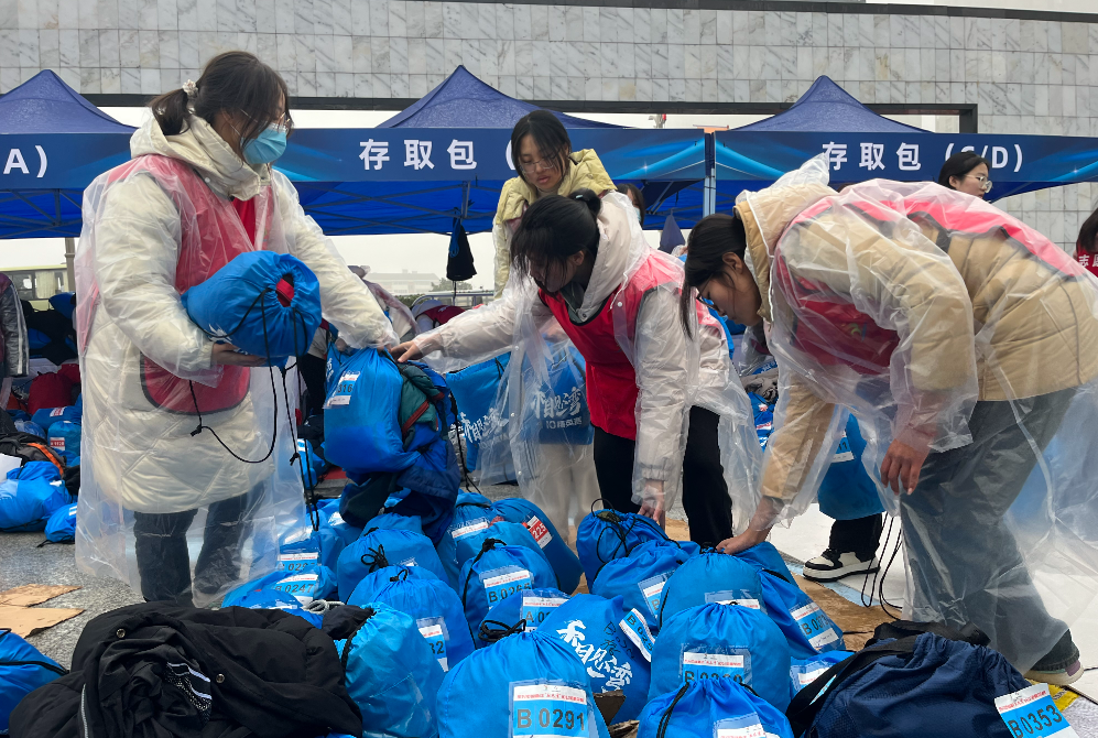 12月30号早上6点30,虽然下着雨,但是所有志愿者按时集合完毕,穿好志愿者马甲和一次性雨衣,精神抖擞地前往各自的岗位。根据岗位分工,志愿者们分别担任存取包、指引、分流、医疗、补给、计时和物资发放等不同职责。他们各司其职,紧密配合,以专业的态度和热情的服务为参赛者提供全方位的支持。