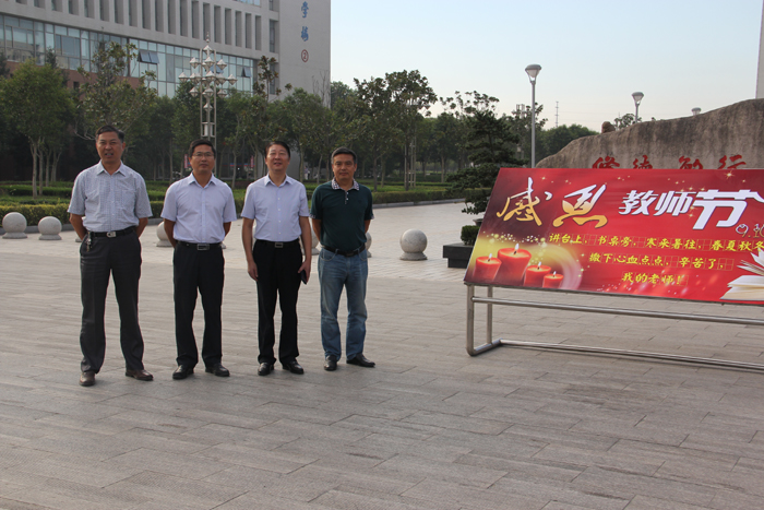9月10日,为庆祝第31个教师节,潘晓群校长带领学校领导班子一大早站在学校大门口,迎接老师们到校。