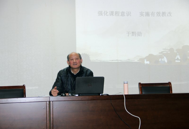于黔勋老师对与会人员作了“强化课程意识,实施有效教改”专题讲座。他从理解课程意识的内涵要义、增强研究意识是确立课程意识的关键、以解决“短板”为确立课程意识的着力点三个方面阐释了什么是课程意识,说明为什么要确立课程意识,提出了确立课程意识的建议。