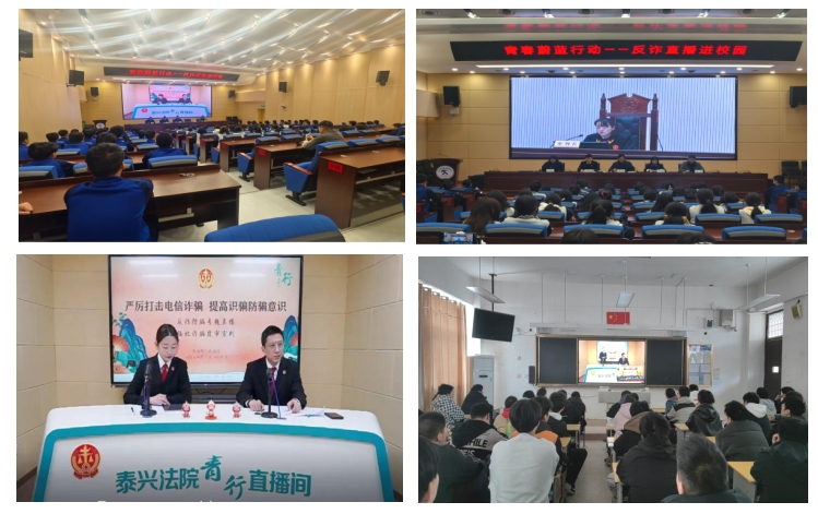 2024年3月26日,我校携手泰兴市人民法院和共青团泰兴市委员会共同开展了一场别开生面的“青春蔚蓝行动——反诈直播进校园”活动。此次活动旨在进一步提升学生们的反诈意识,筑牢校园安全防线。