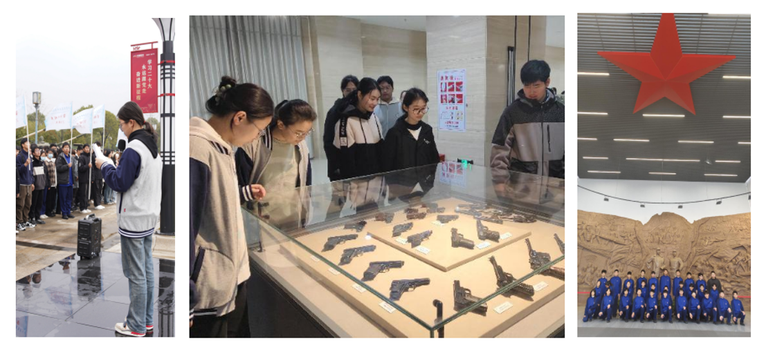 在新四军黄桥战役纪念馆,师生们同样受到了深刻的教育和启发。学校副校长周勇在致辞中要求同学们努力学习本领,全面提高自身素质,学习先烈们不屈不挠、艰苦奋斗的革命精神!师生们庄严宣誓,郑重承诺会树牢信仰之基,扛牢时代之责,筑牢能力之基,实现技能报国。学生代表23美术班胡铭楠同学呼吁同学们共同传承和发扬黄桥精神,多参加技能大赛和社会实践等活动,只要努力,不同赛道,同样精彩。