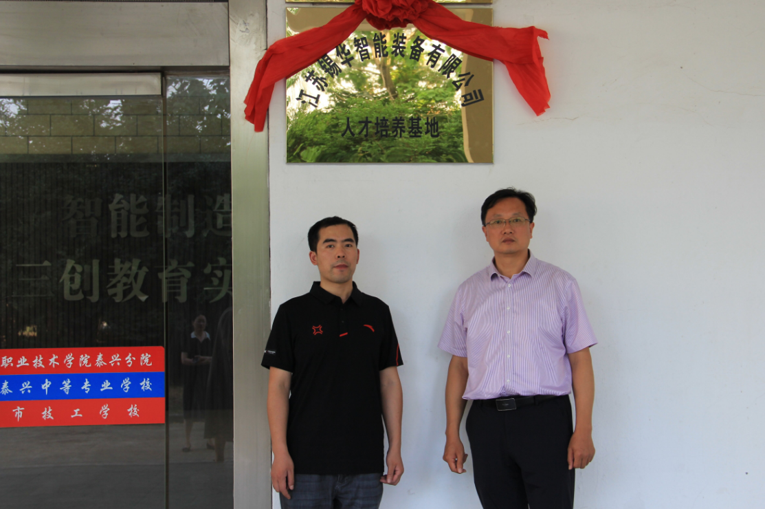 6月18日,泰兴市智能制造产业学院理事单位江苏锡华智能装备有限公司人才培养基地揭牌仪式在我校举行。锡华公司代表,学校副校长、产业学院院长周勇、学校相关部门负责人及部分师生共同参加仪式。产业学院周勇院长、锡华公司石东总经理共同为人才培养基地揭牌。