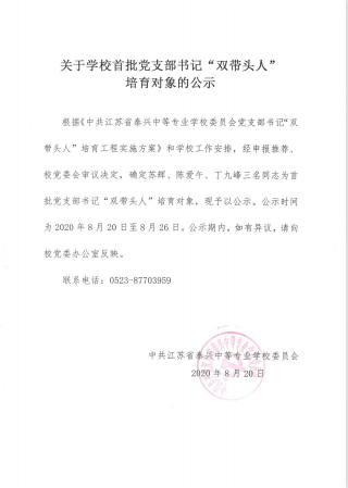 关于学校首批党支部书记“双带头人”培育对象的公示