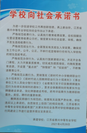 按市委教育工委《关于开展2021年‘双承诺’活动的通知》要求,我校各部门立即召开专题会议,组织广大教师认真学习承诺内容并签订承诺书。学校将《学校向社会承诺书》和《教师向家长承诺书》通过家长会、微信公众号发布,并在学校大门外进行公示,同时设立举报信箱、公布举报电话,主动接受学生、家长和社会的监督。