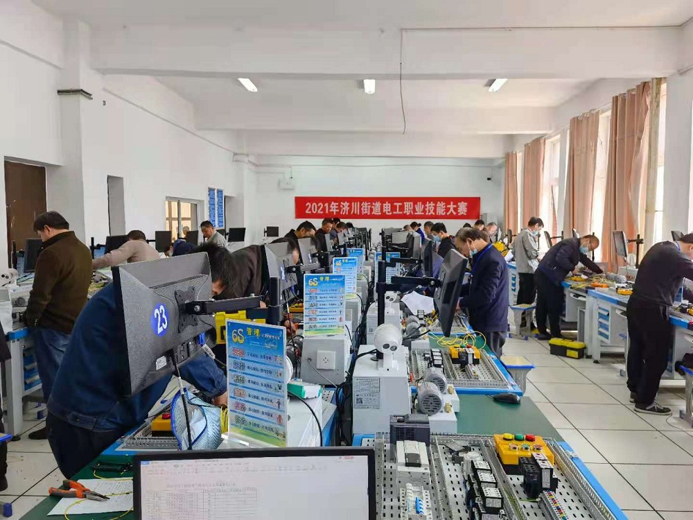 4月18日,由济川街道总工会主办,我校承办的2021年济川街道电工职业技能大赛在我校顺利举行。来自济川街道多家企业的33名选手参加了本次大赛。经过三个小时的激烈角逐,最终产生一等奖2名、二等奖4名、三等奖6名和鼓励奖若干名,济川街道总工会黄惠主席为获奖选手颁发了荣誉证书和奖品。
