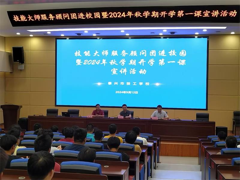 为深化学生对工匠精神的理解与传承,激发学生树立以技能立身、报效国家的崇高志向,学校于9月12日下午在知行厅隆重举办了“技能大师服务顾问团进校园”宣讲活动。此次活动特邀全国劳动模范、全国技术能手、劳模党支部书记黄俊作为主讲嘉宾,泰州市人社局职业能力建设处副处长井晓冬出席。活动由学生管理服务中心主任施文龙主持。