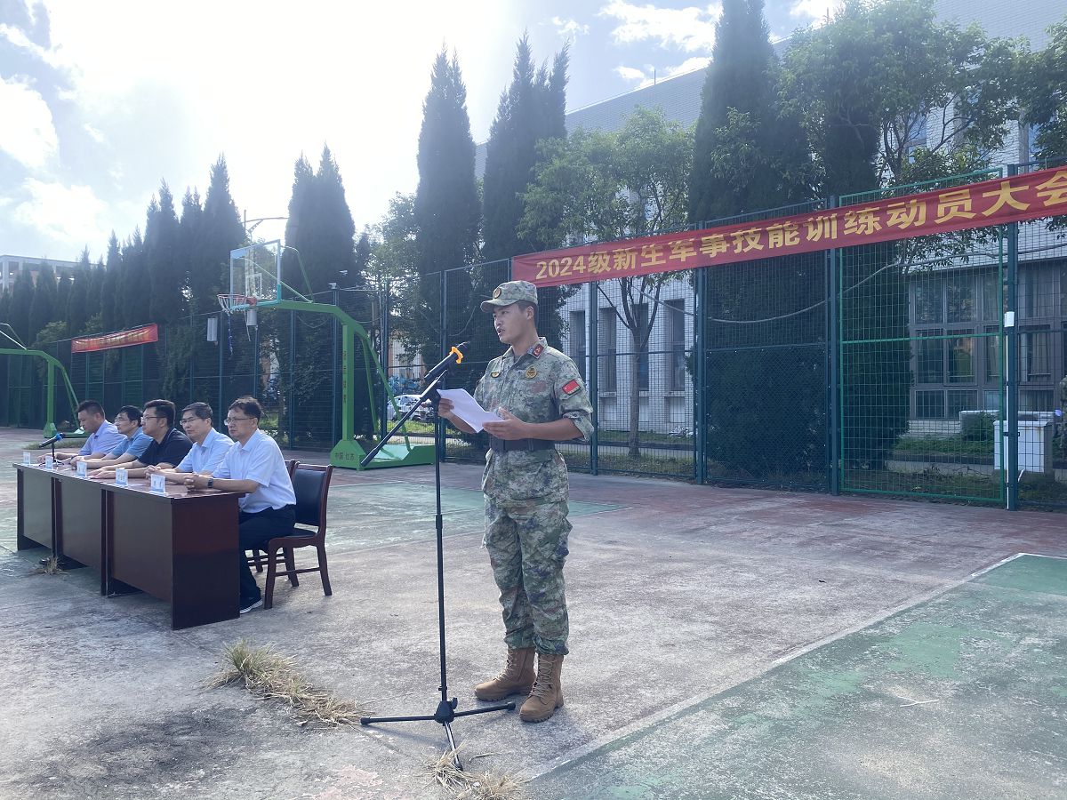 接着,教官代表芮新琛发言。他表示将严格按照军训大纲要求,科学施训,文明带兵,与同学们同甘共苦,确保军训任务圆满完成。