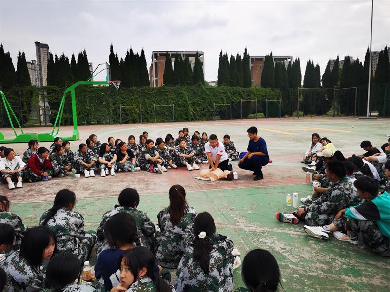 为全面普及救护知识,提高学生应急救护能力,丰富新生军训内容,9月25日学校联合泰兴市红十字会开展了2024级新生应急救护培训。