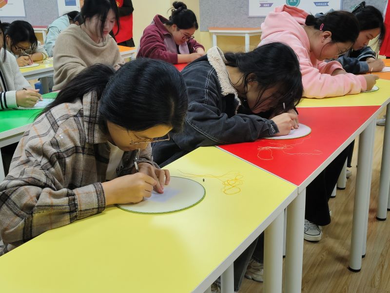 刘大师为学生们展示了其精美的刺绣作品,并亲自教授刺绣的基础技艺和注意事项。从挑选合适的线材、巧妙配色,到掌握刺绣的针法和图案设计,刘大师都进行了详尽的讲解,让学生们在技艺上有了显著提升。