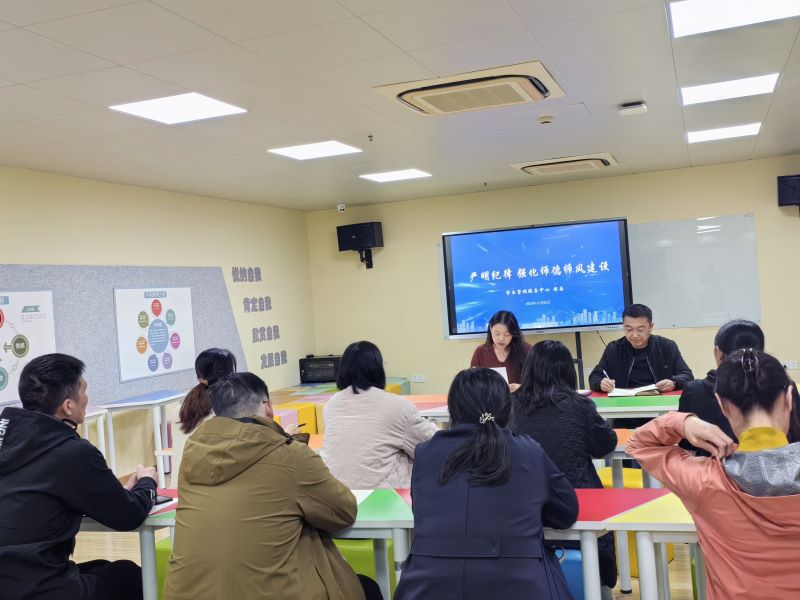 为了推动师德师风建设常态化、长效化,引导教师不触红线、不越底线、 不碰高压线,根据学校部署,11月5日下午,学生管理服务中心、团委在四楼学生成长发展中心联合开展“严明纪律,强化师德师风建设”教育。