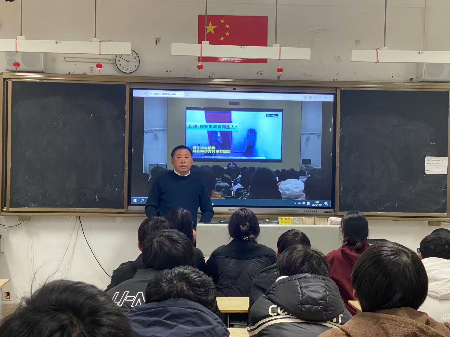 接着,学校组织了多样化的活动,确保宪法教育覆盖到每一位学生。各班级在班主任的带领下,集体观看了法制教育视频,视频内容涵盖了青少年权益保护、预防校园欺凌、网络安全等多方面,通过直观的画面和真实的案例,增强了学生们的法制观念和安全意识。同时,各班级召开了相关主题班会,学生们围绕宪法学习心得、如何在日常生活中践行宪法精神等话题展开了热烈讨论,不仅加深了对宪法的理解,也激发了大家积极参与法治建设的责任感和使命感。