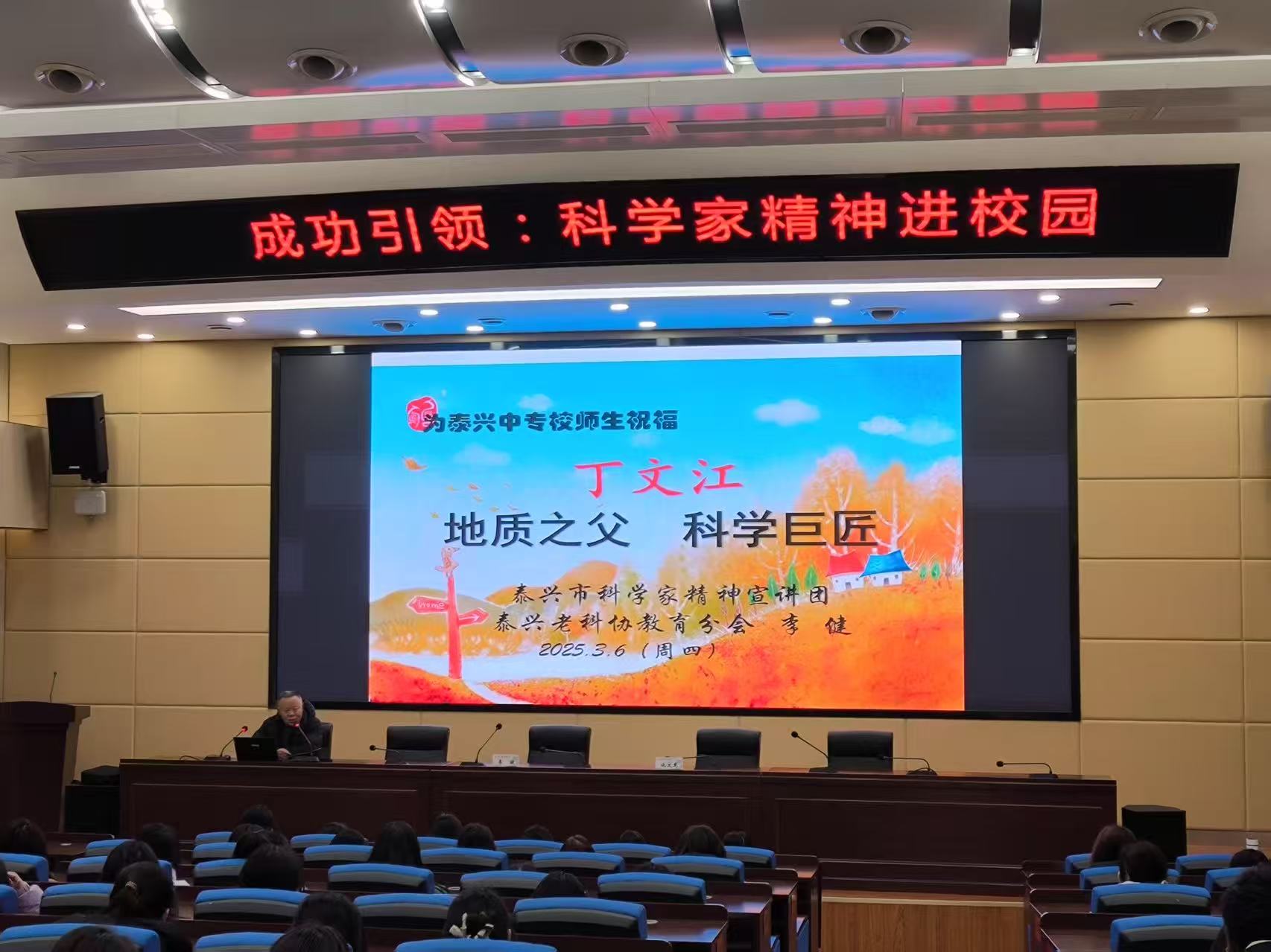 3月6日,一场以“丁文江科学家精神”为主题的宣讲会在我校隆重举行。此次活动旨在展示泰兴籍地质学先驱丁文江先生的家国情怀与大师风范,激发同学们崇尚科学的热情,培植学大师、铸工匠的情怀,激励广大学子勇敢追求梦想,在追求成功的道路上找到方向、坚定信念。