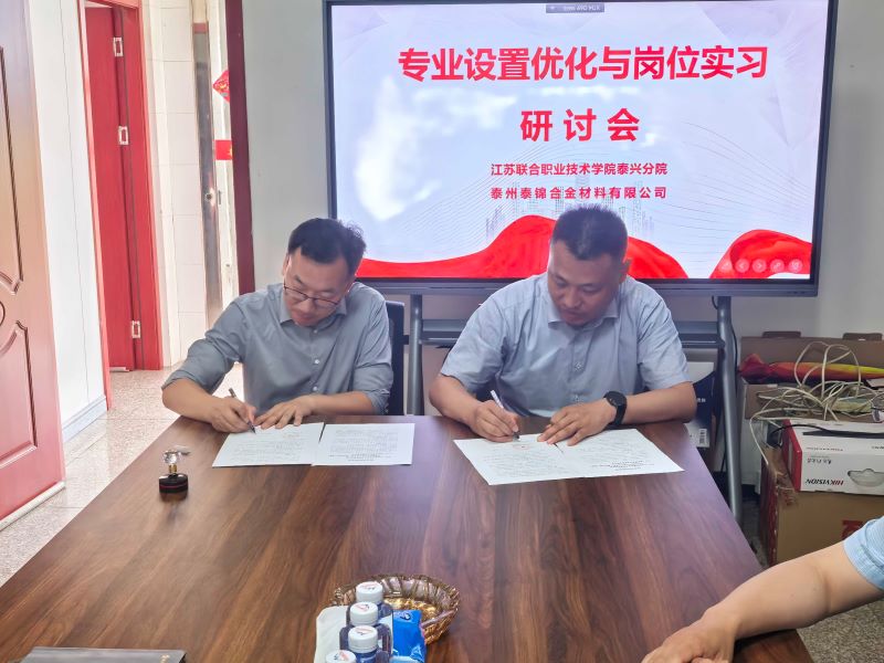 为了充分发挥职业院校人才培养、科学研究和服务社会的功能,借助企业优势,优化专业设置,为产教融合提供更大空间,5月15日下午,学校副校长苏辉率领学生管理服务中心、机电工程系等部门负责人赴泰州泰锦合金材料有限公司开展专业设置调研,并签署校企战略合作协议。