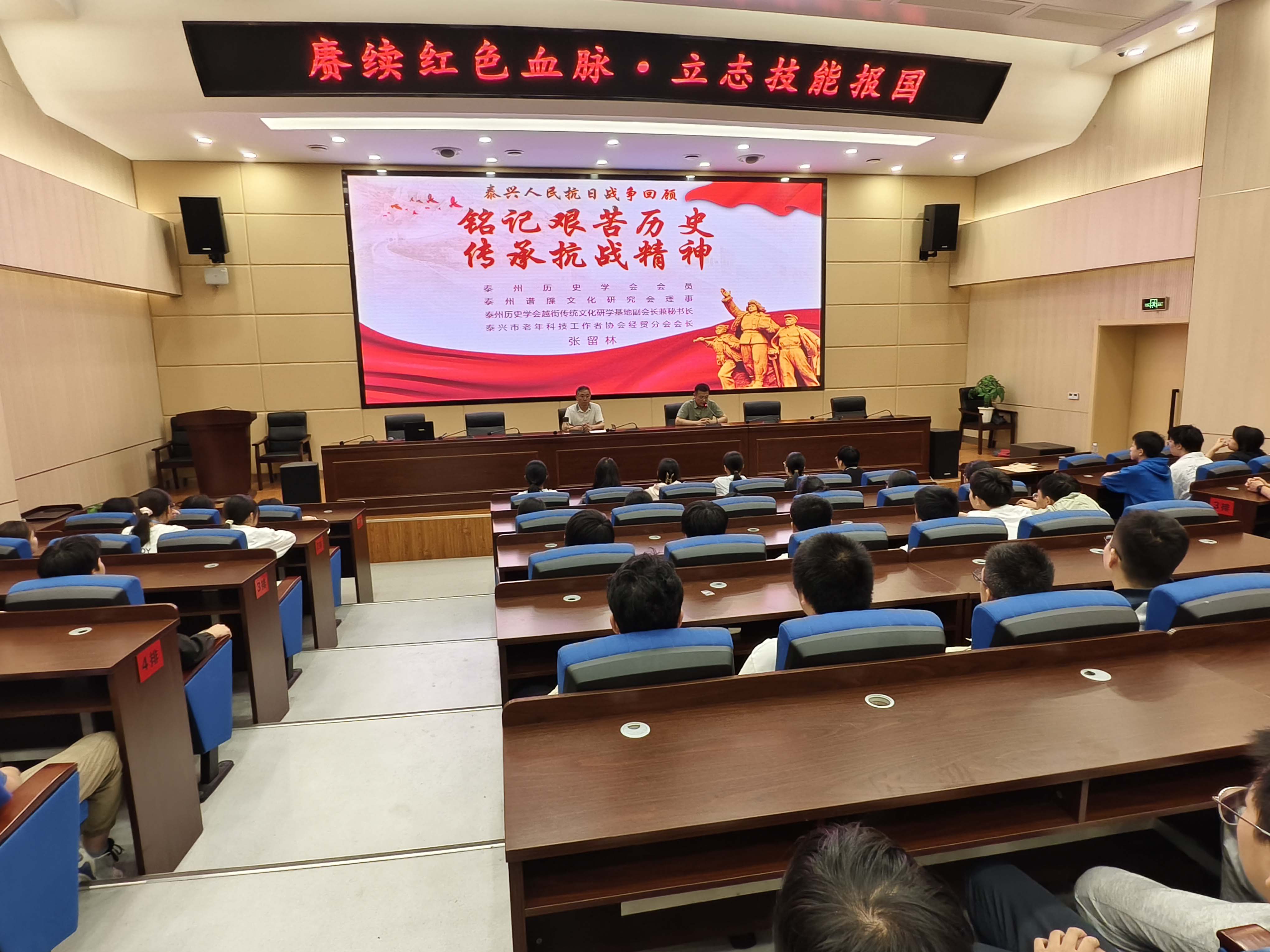 为充分发挥“五老”在关心下一代工作中的独特优势,9月18日下午,学校特邀泰兴市老年科技工作者协会经贸分会会长张留林,在知行厅主讲以“铭记泰兴抗战历史,传承红色革命精神”为主题的红色教育讲座。活动由学生管理服务中心主任施文龙主持。