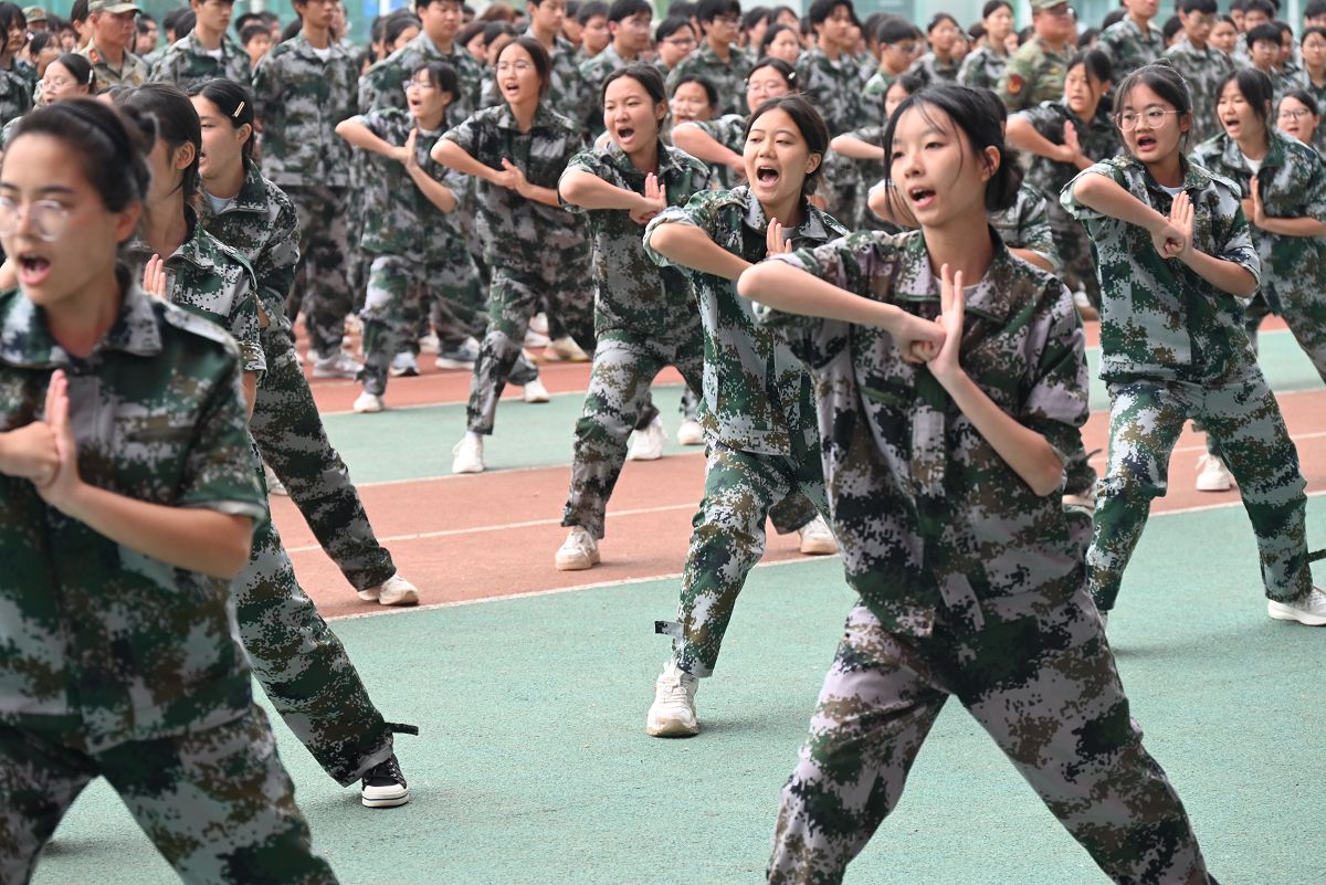 列队会操环节,新生们以饱满的热情和昂扬的斗志,展示了七天来刻苦训练的成果。他们步伐整齐、口号响亮,充分展现了职业学校学生的良好风貌和过硬素质。紧接着,全体新生齐唱革命歌曲,嘹亮的歌声回荡在操场上空,激发了大家的爱国热情和民族自豪感。
