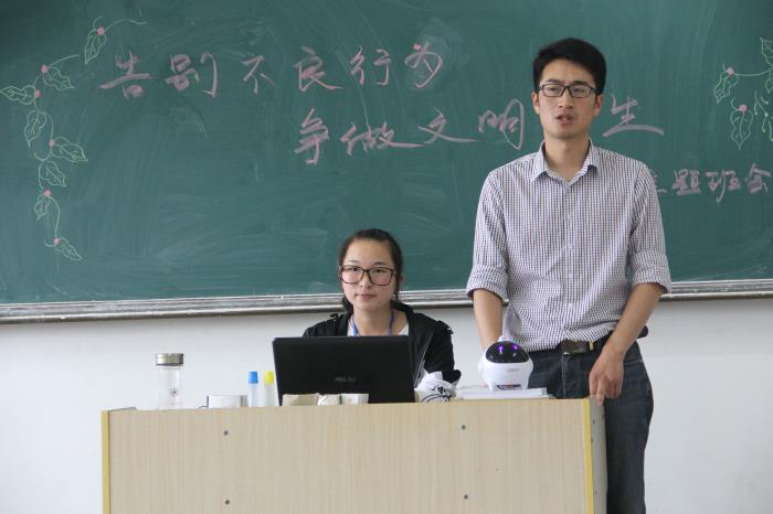 5月27日上午第三节课,我校一年一度的主题班会评比活动拉开序幕。15财会联五班以《告别不良行为 争做文明学生》为主题首先亮相。学工处、团委及系部学生工作的副主任作为评委出席活动并进行评比打分。