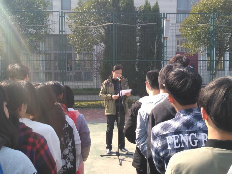 3月27日上午两节课后,我校在篮球场举行升旗仪式,并由安全办周勇主任作了题为“强化安全意识,提升安全素养”的国旗下讲话。