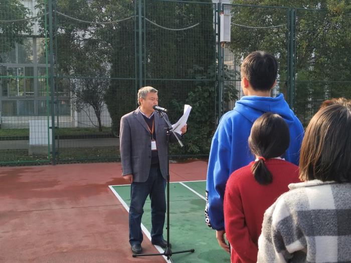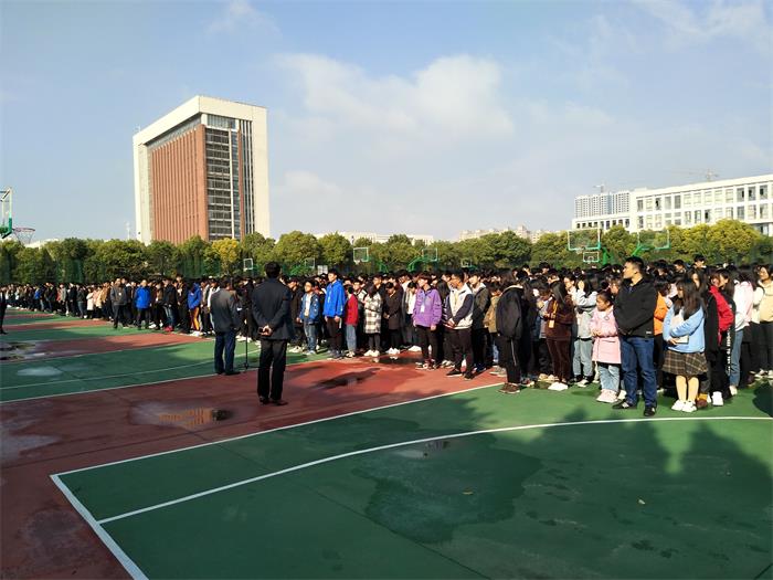 11月12日上午两节课后,全校师生在篮球场举行升旗仪式。学工处吕庚圣主任主持升旗仪式,德育副校长刘正生同志作了题为《抓“六好”,夯实学生养成教育》为主题的国旗下讲话。