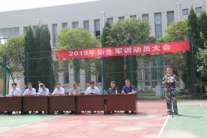 8月23日上午9时30分,江苏省泰兴中等专业学校2019年高一新生军政训练动员大会在校篮球场举行,为期八天的军训正式拉开帷幕。泰兴市济川街道人武部钱雪峰部长出席并讲话。市教育局职社科李华主任、学校党委副书记校长何晨阳及校领导班子全体成员出席。刘正生副校长做军训动员,教官代表和学生代表发言。学工处吕庚圣主任主持大会。 动员大会上,刘校长指出,军训是同学们迈入我校的第一课。军训有助于同学们锻炼自我,考验自我,磨练自己的意志,强健自己的体魄;有助于同学们强化组织纪律性,培养集体观念,形成良好的班风,使班级变得更团结、更文明;有助于同学们传承“红色文化”,植入一代代英雄的血脉,将泰兴杨根思“三个不相信”精神扎根心里,苦练专业技能,为家乡建设作出贡献。最后,刘校长希望同学们从军训中汲取人生智慧,铺就人生底色,在今后的生活中实现自我,从江苏省泰兴中等专业学校这个理想的殿堂起飞。