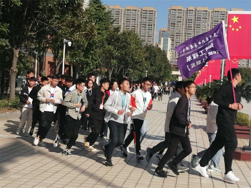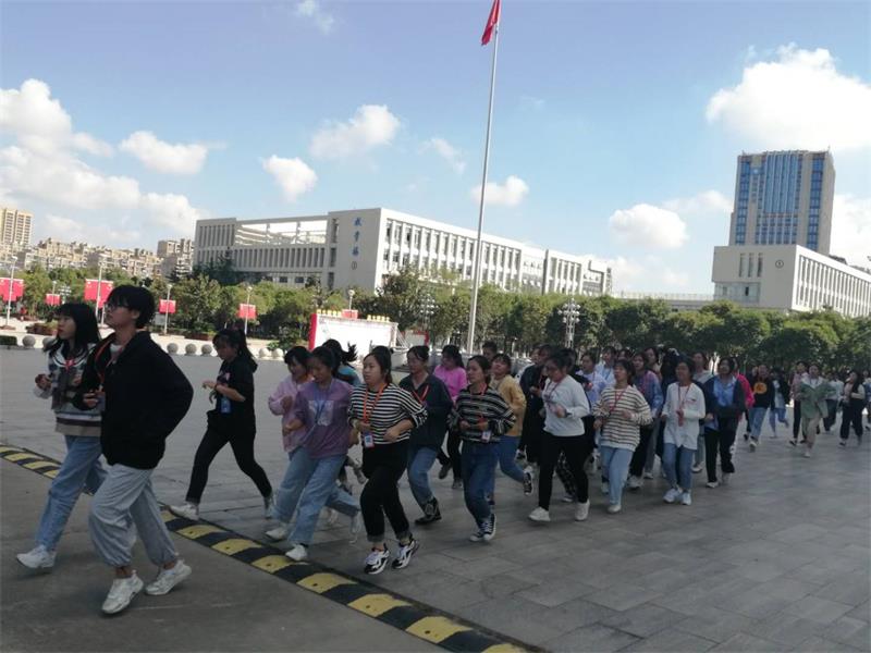 10月9日课间操,学校近100个班级在各系部指定区域,以班级为单位组成方阵,开始跑操锻炼。