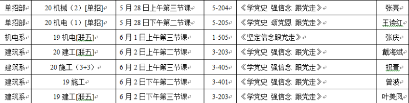 5月28日至6月2日,相继推出“学党史 强信念 弘扬工匠精神”主题班会活动展示班级共8个班级。