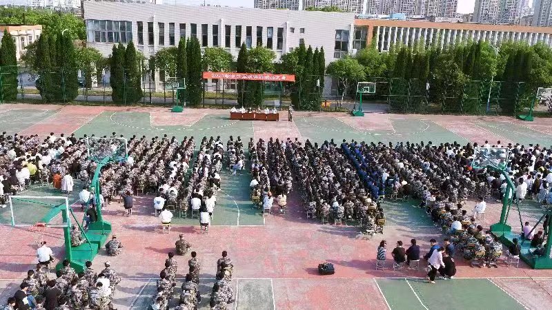 5月8日下午,恰逢职教活动周之际,我校2021级高一新生军训动员大会在校篮球场举行。市人武部军事科科长王新进,市教育局职教科副科长肖立,学校党委副书记丁金荣、副校长刘正生、副校长周勇出席。学生管理服务中心主任施文龙主持大会。