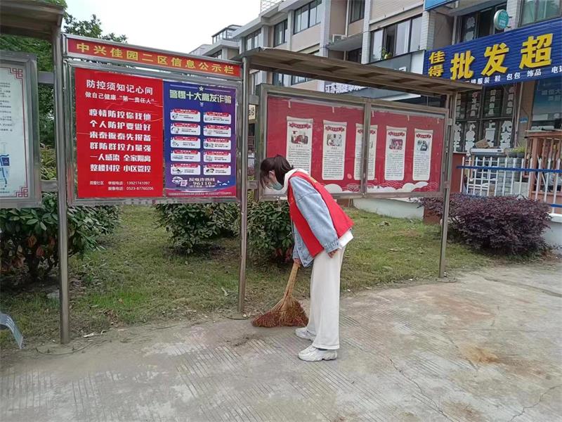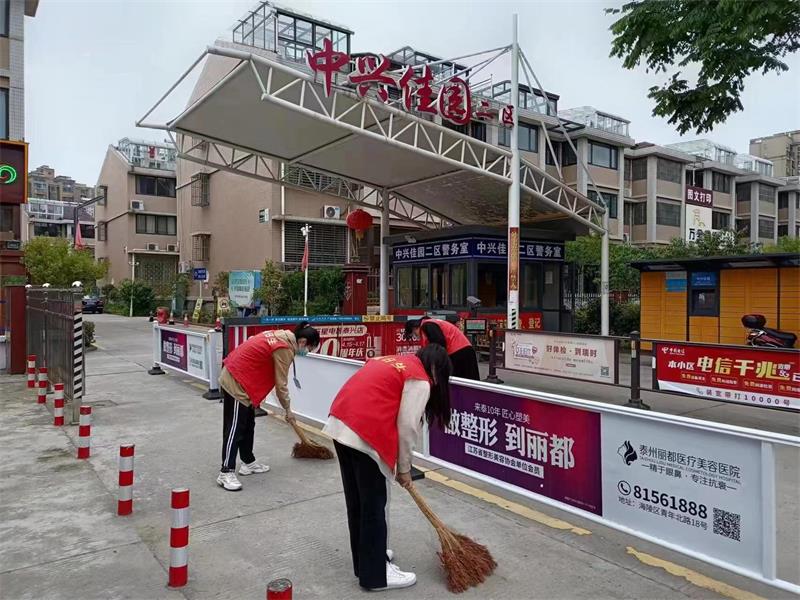 在老师组织下,大家分工合作、有条不紊,有的负责捡拾垃圾,有的组负责扫地,有的用湿抹布擦拭栏杆与告示牌。他们不怕脏、不怕累、不怕臭,经过志愿者们辛苦的劳作,中兴佳园小区的环境变得干净、整洁,切实提升了小区宜居水平,用实际行动传承中华民族传统美德。