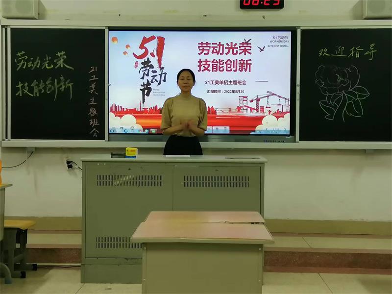 校级主题班会评比是在各系部初赛的基础上,共推荐了12个班级参加线下观摩比赛。“崇尚劳动精神 争做生活劳模”“弘扬劳模精神 讴歌劳动创造”“执劳动之心 做好中职人”“劳动光荣,技能创新”等班会结束后,评委老师纷纷鼓掌表示肯定。