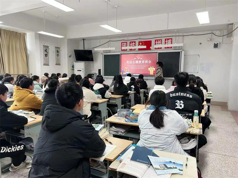 各系(部)还各自安排自习课或课余时段组织学习了宪法、未成年人保护法、预防未成年人犯罪法等法律法规和学校规章制度,将“学宪法讲宪法”活动全覆盖,提升学法懂法守法的校园氛围。