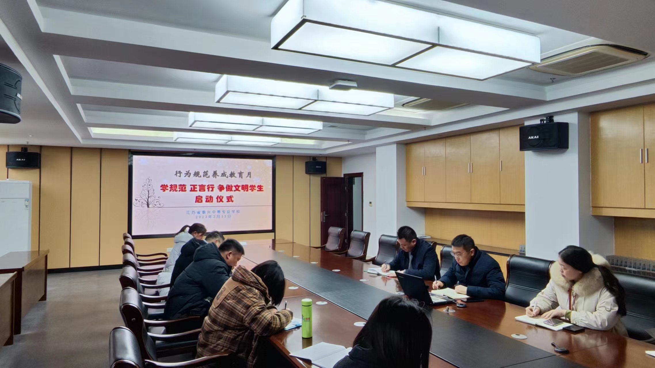 2月13日上午,学校“行为规范养成教育月”活动启动仪式在九楼会议室举行。学校副校长苏辉、团委书记杨巧珍、学生管理服务中心全体人员以及各系部学工主任参加启动仪式。