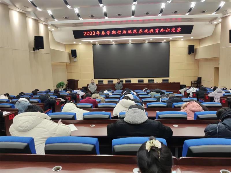 为进一步将行为规范落到实处,培养学生良好的社会公德意识和文明行为习惯,2月23日上午,我校在知行厅会议室举行了“行为规范养成教育”知识竞赛。学生管理服务中心组织了本场活动。