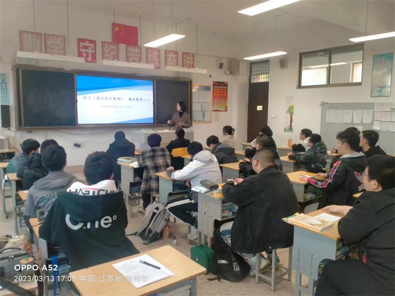 学校历来重视规范化管理,组织完善了《学生违纪处分条例》,以适应新时代的要求。为了强化学生们的纪律意识,遵守条例规定,重拾敬畏之心,3月13日班会课,全校统一开展了“学习《学生违纪处分条例》 重拾敬畏之心”主题班会。
