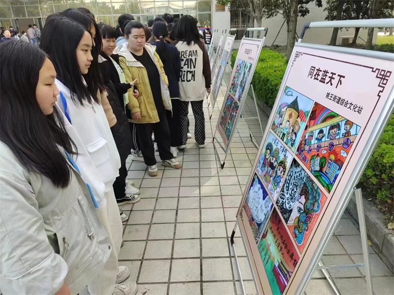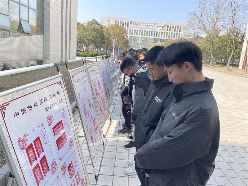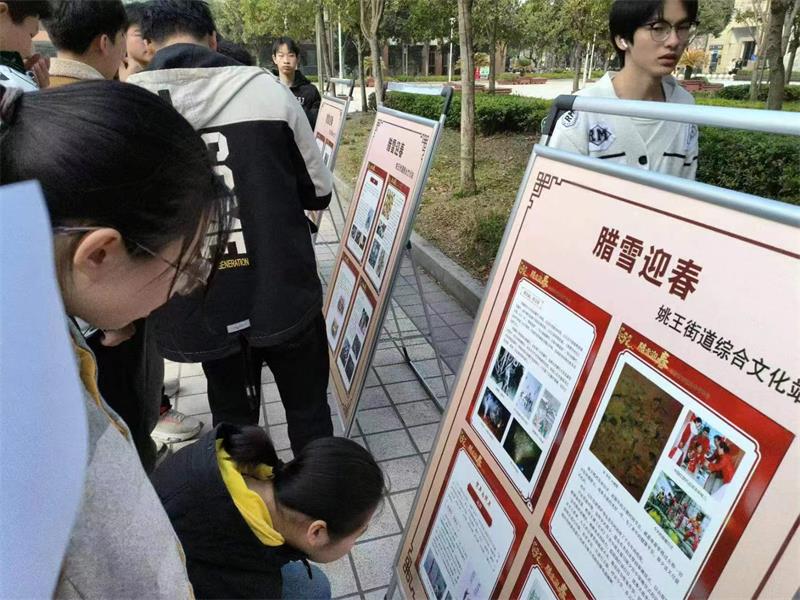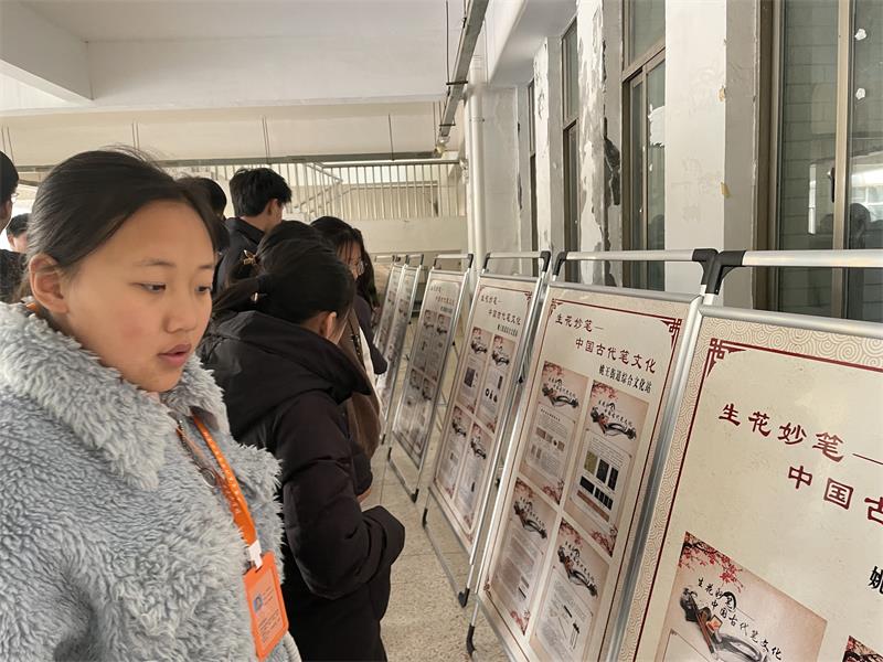一幅幅文化图片,分成了“传统剪纸文化、古代笔文化、腊雪迎春、同在蓝天下”等若干个主题,犹如一场文化盛宴,让中华传统文化“活”起来、“火”起来,吸引了同学们驻足观看,提升同学们崇美、赞美的高尚情操,奏响时代“美”的强音。
