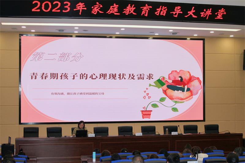 为了给学生营造良好的家庭教育环境,普及家庭教育科学理念,增进和谐的亲子关系,3月17日下午,学校开展家庭教育大讲堂活动。学校德育副校长苏辉出席会议并讲话。活动由学生管理服务中心主任施文龙主持。家校共同发展委员会代表、学生家长出席了本次活动。