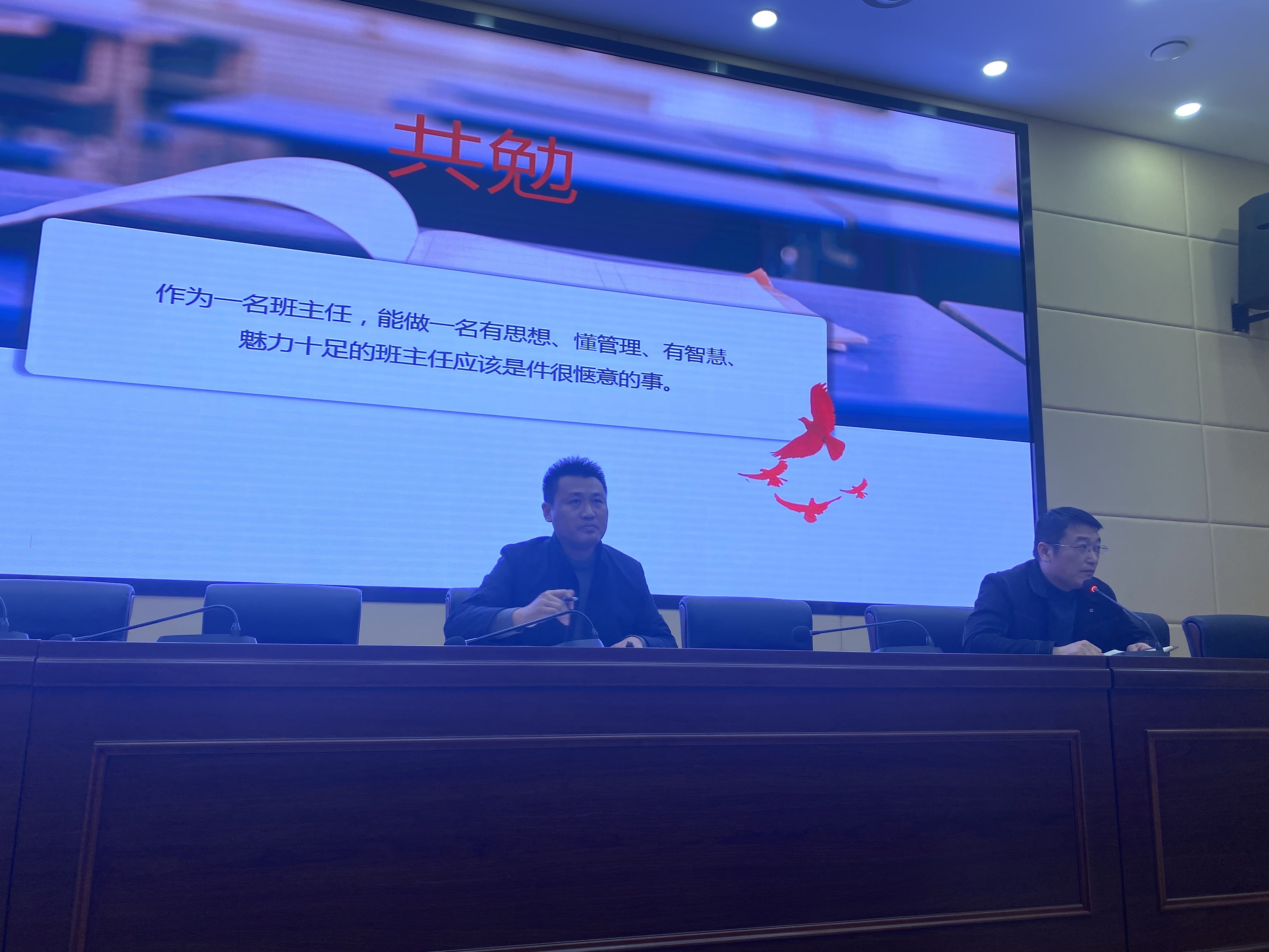 3月23日下午,全体班主任到知行厅参加了2023年学校优秀班主任事迹报告会。副校长苏辉出席此次报告会并在会上作了总结发言,学生管理服务中心主任施文龙主持了报告会。