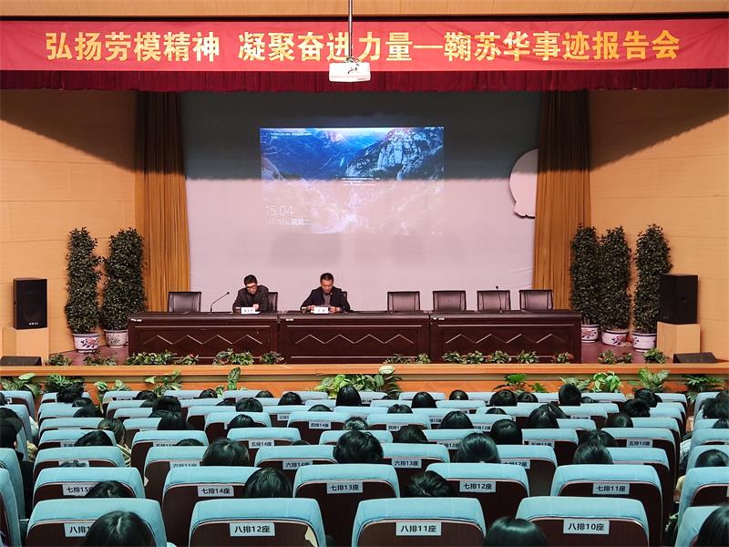 为进一步传承和弘扬劳模精神、工匠精神,激励学生以劳模为榜样,通过辛勤劳动创造幸福生活、实现人生梦想,学校于3月28日在报告厅举行了“弘扬劳模精神,凝聚奋进力量”事迹报告活动。“江苏省劳动模范”、高级工程师鞠苏华进行了劳模事迹宣讲。学校副校长苏辉主持报告会,化学工程系近400名师生参加了现场活动。