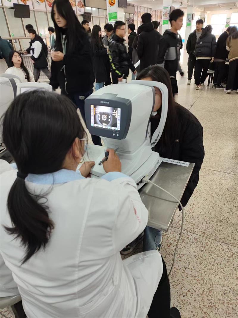 检测现场秩序井然,工作人员对每一位学生的视力进行电脑验光、数据采集、纳入个人档案。检测结束后,学校将及时把检查结果反馈给学生和家长,让学生和家长做到早发现、早治疗。