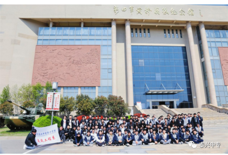 在新四军黄桥战役纪念馆,副校长苏辉的致辞要求同学们努力学习本领,报效祖国;明辨是非,全面提高自己的素质。学生代表表示会让自己的青春之花绽放在祖国最需要的地方。学生庄严宣誓,郑重承诺会树牢信仰之基,扛牢时代之责,筑牢能力之基,实现技能报国。会后,师生们在场馆人员的带领下参观展厅,随着讲解员的解说,去感受烽火连天的岁月,去了解那场伟大的胜利。