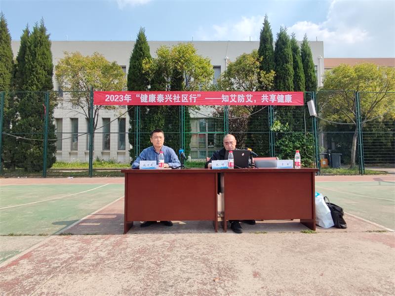 为深入推进健康知识普及行动,大力倡导健康文明的生活方式,4月26日下午,学校在篮球场举办2023年“健康泰兴社区行”——知艾防艾,共享健康主题教育活动。泰兴市皮肤病防治所所长张峰、泰兴市疾病预防控制中心健康教育所所长常军出席活动。活动由学生管理服务中心主任施文龙主持,全校4000名师生参加了活动。