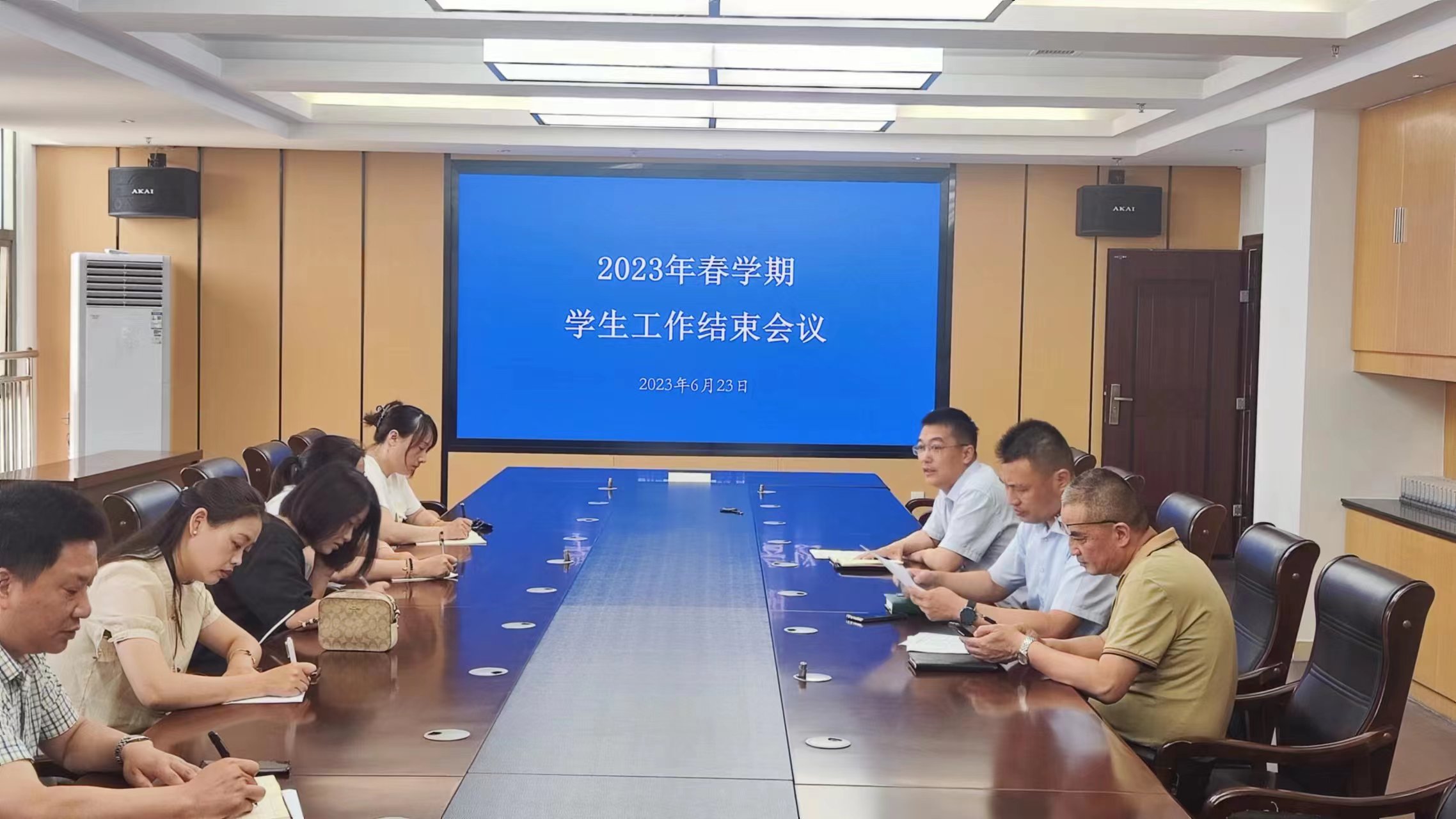 6月23日,我校在903会议室召开了2023年春学期学生工作结束会议。会议由学生管理中心施文龙主任主持,苏辉副校长、安全管理中心马亚峰主任、团委杨巧珍书记、学生管理中心副主任及各系部学工副主任出席了会议。