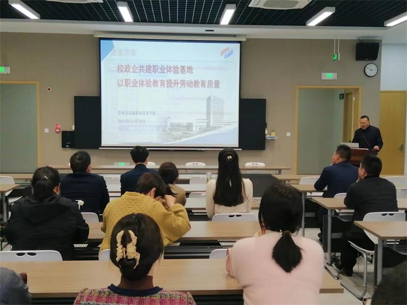 交流会上,太湖湾劳动教育基地负责人王道林以《校政企共建职业体验基地,以职业体验教育提升劳动教育质量》为题进行了汇报。交流会后,全体老师参观了基地各个功能室。