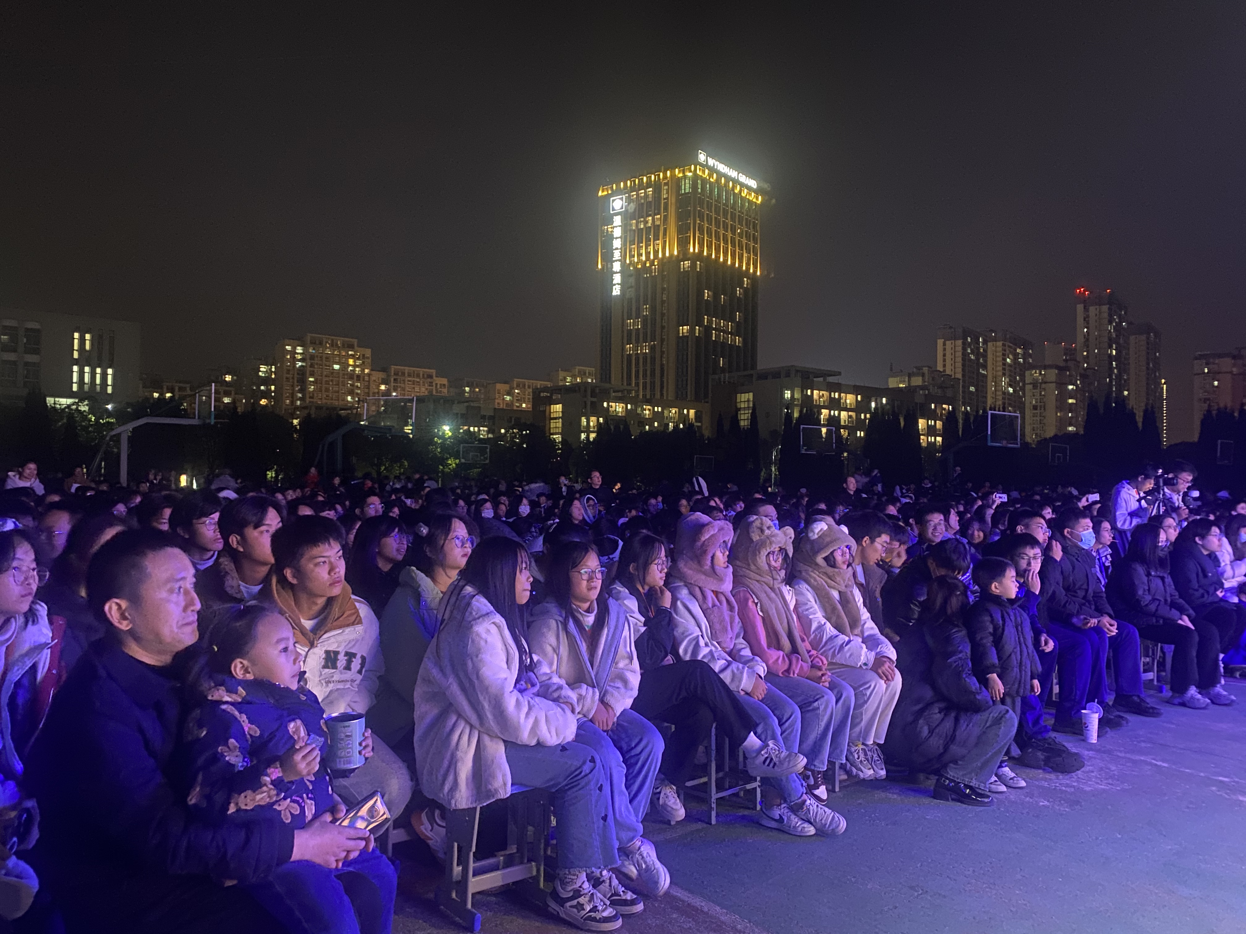 晚上六点半,我校师生坐满学校篮球场,虽然遭遇降温,但现场的气氛却没有降温。此次演出节目形式多样,有舞蹈、情景歌舞、音乐快板、歌曲、小品、乐器演奏、音诗画、独幕剧等,节目内容丰富精彩,多宣传正能量。师生们在演员的倾情表演中时而欢笑,时而流泪,时而鼓掌欢呼。