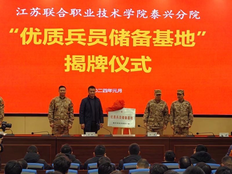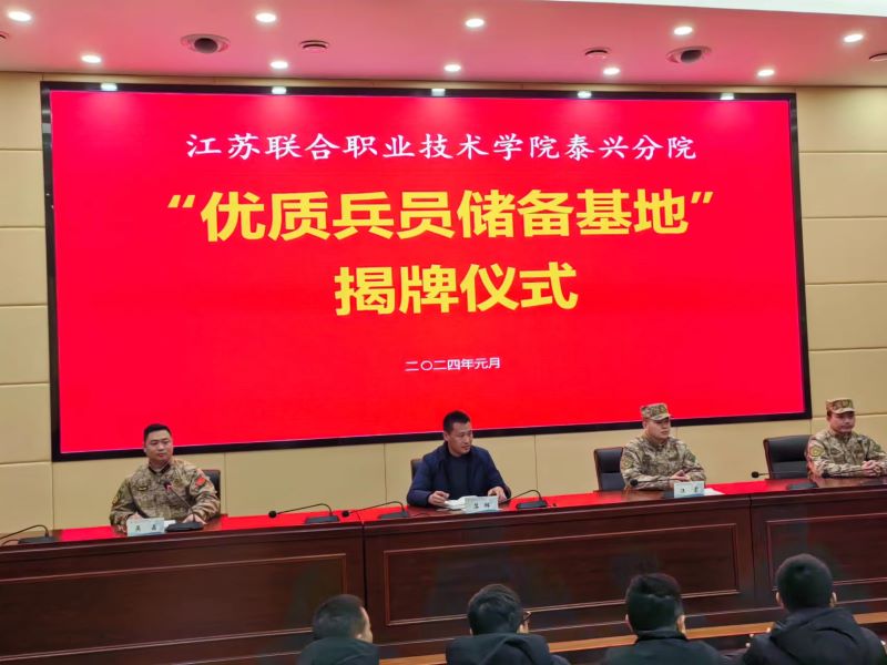 一年一度的征兵季已经开始,为加强征兵宣传工作,提高兵员质量,2024年1月18日,学校隆重举行了泰兴市优质兵员储备基地揭牌活动。泰兴市人武部部长汪震同志、泰兴市人武部参谋潘磊同志、姚王街道人武部部长吴晶、学校副校长苏辉出席会议。