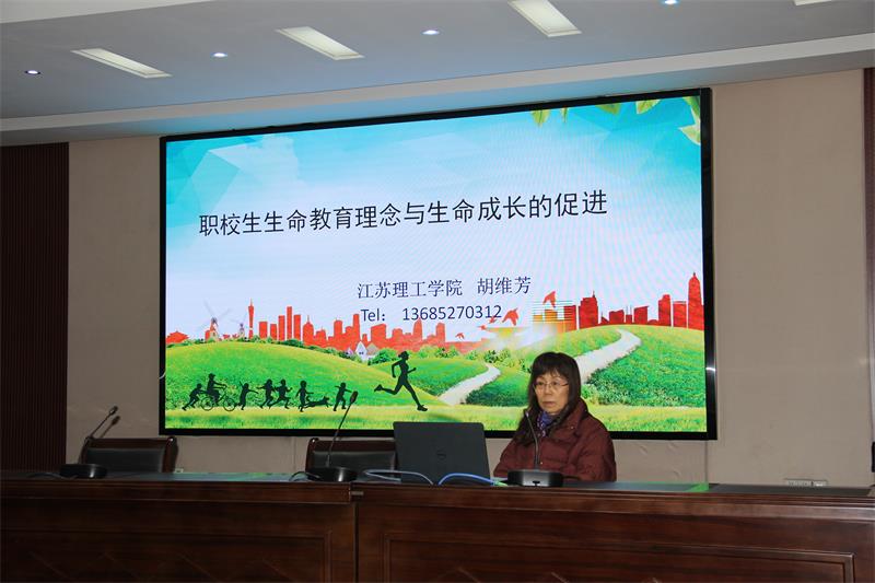 为进一步贯彻省教育厅《关爱青少年生命健康“润心”行动方案》的文件精神,我校将延续学校心理健康教育的常态化措施,定期开展各类班主任心理讲座。2024年度春学期开学前夕,学校特邀常州市心理学会副理事长、工业心理专委会主任、江苏省心理学会工业心理专委会副主任、江苏理工学院胡维芳教授来校开展主题为“职校生生命教育理念与生命成长的促进”的讲座。胡维芳教授从生存教育、安全教育、生命意义教育等六个层面讲述了生命教育内容,并把学生生命教育存在的问题、解决的方法和实际操作的做法进行深度剖析,指导班主任们开展学生生命教育工作。