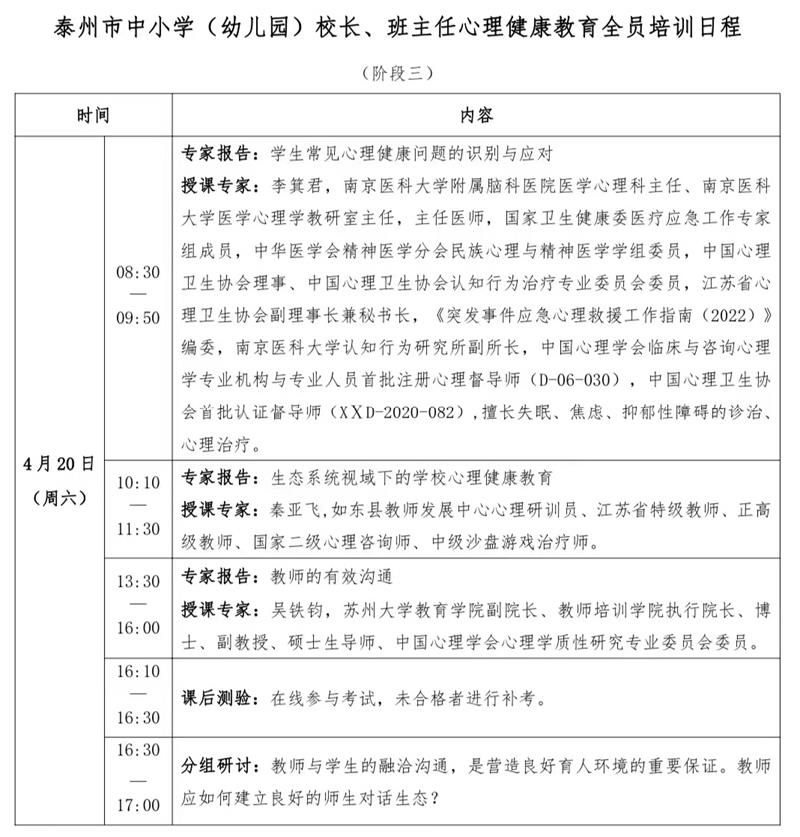 4月20日,学校校级班子成员、中层干部及班主任齐聚教师发展中心一楼会议室,参与了泰州市心理健康教育的第三阶段专题培训。